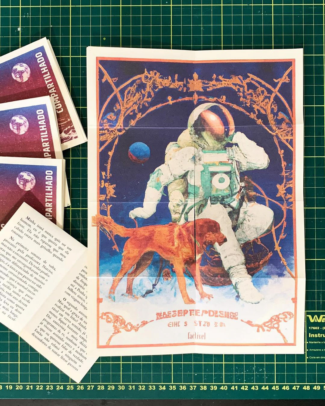 Zine impresso em papel pólen 90g que quando desdobrado vira um cartaz tamanho A4.